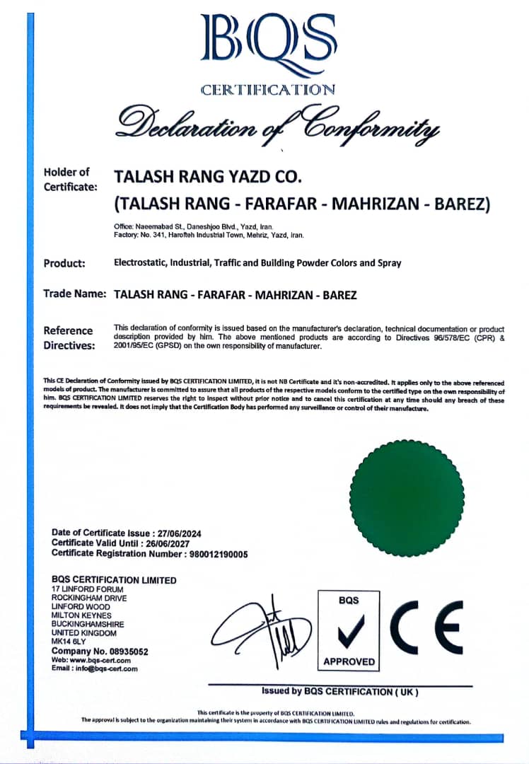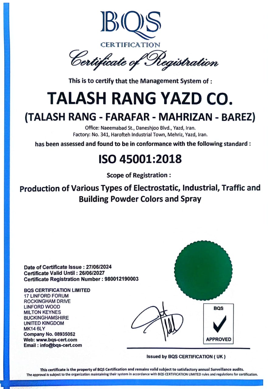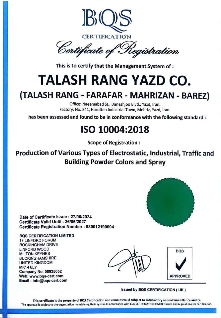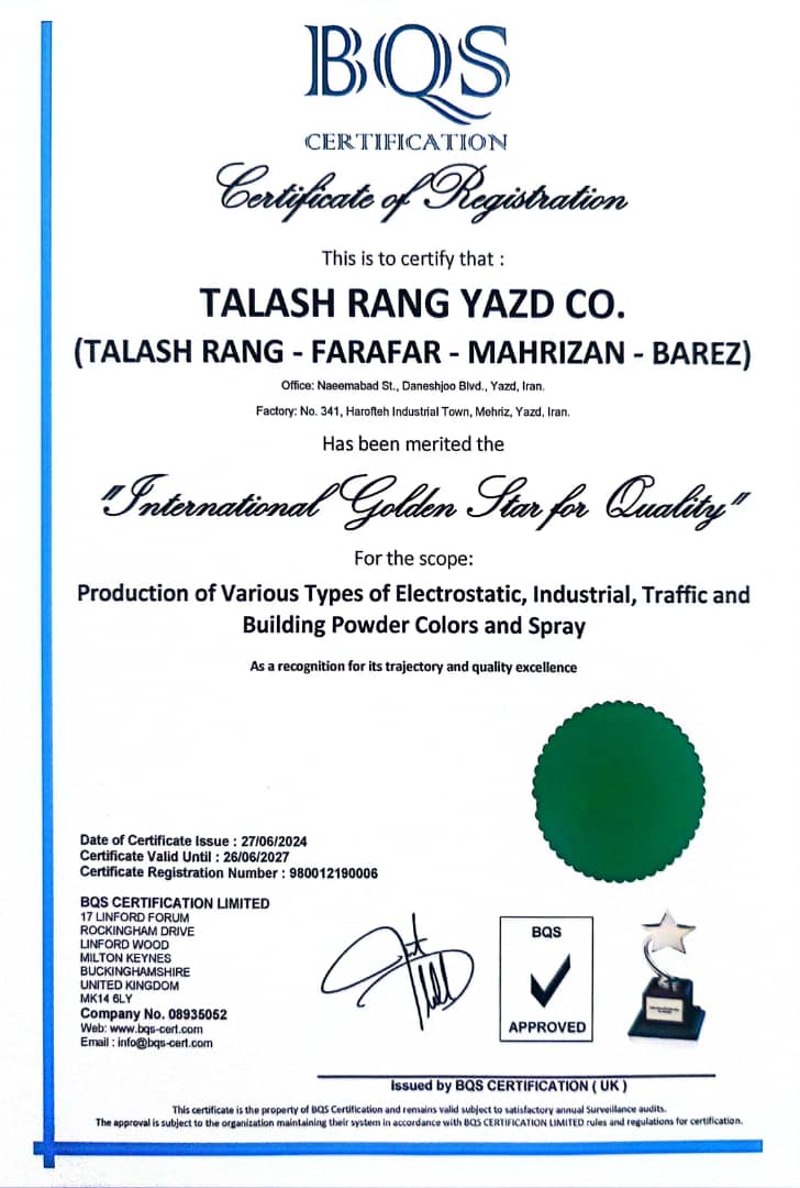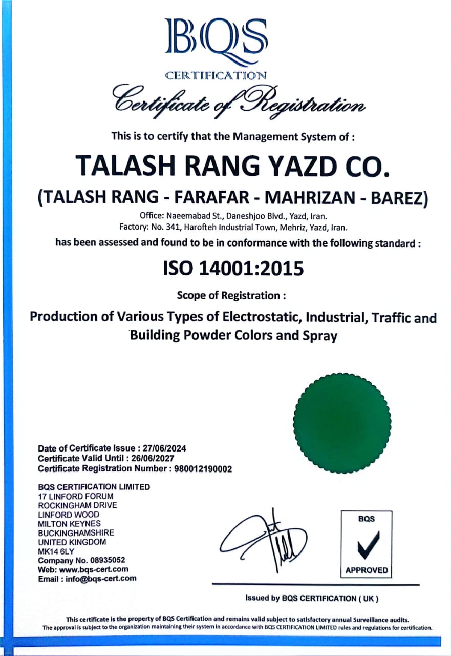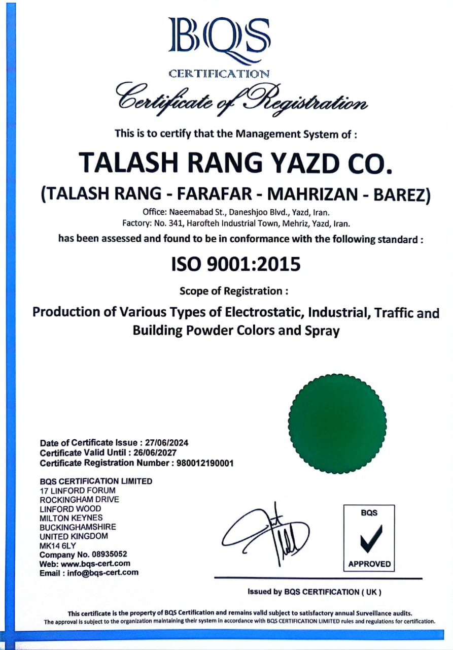 گواهینامه استاندارد 9001 از شرکت BQS انگلستان